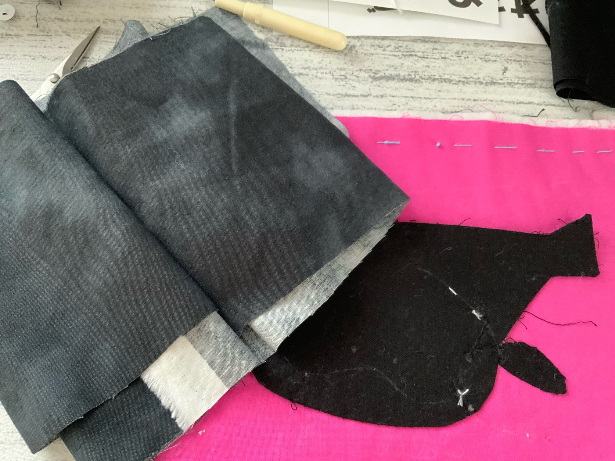 実は前のアップリケ、黒を使っていたと思っていたら違う布を探していて染めの黒が出てきた!