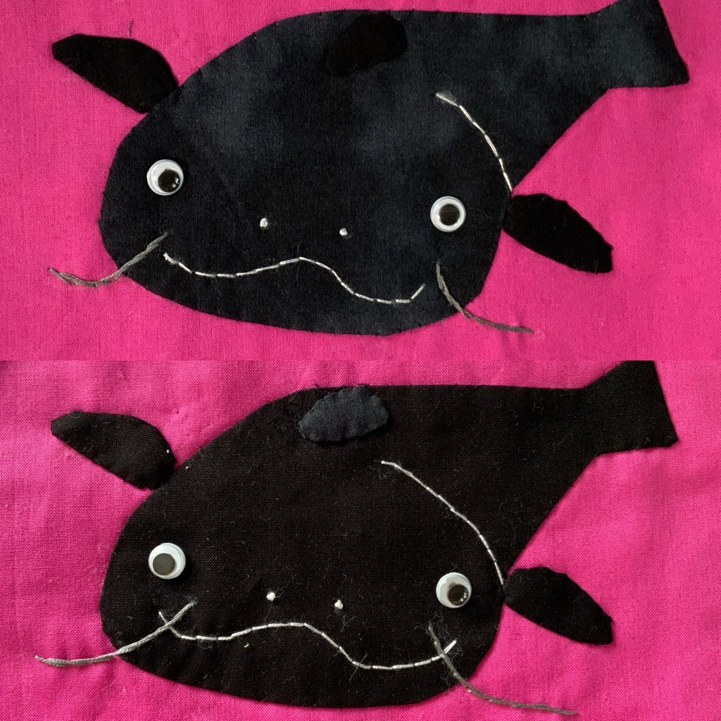 刺繍の違いは置いといて、上のナマズと下のナマズの違いがわかります?