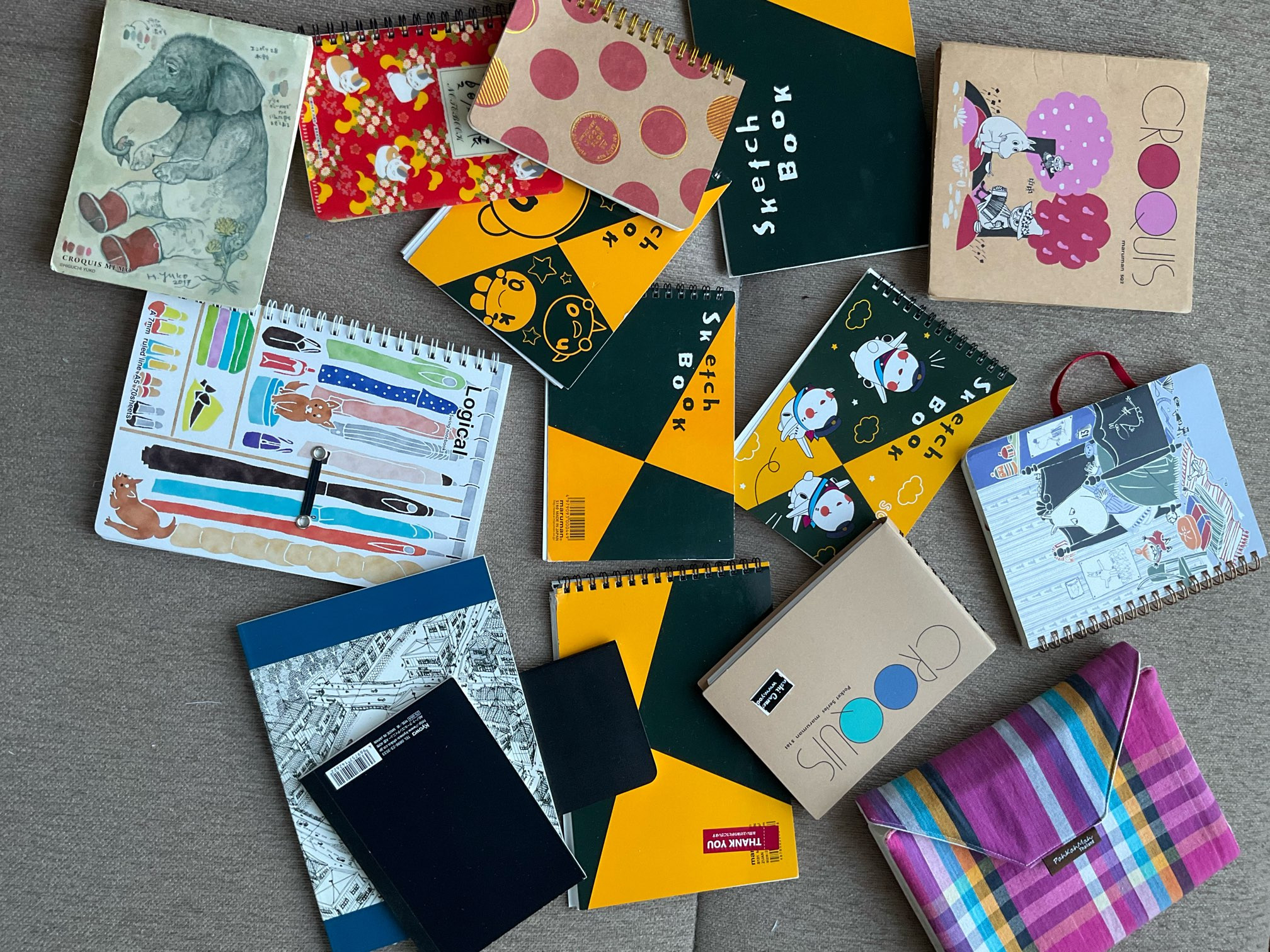 途中でやめてるメモ帳とかスケッチブックが山ほど。