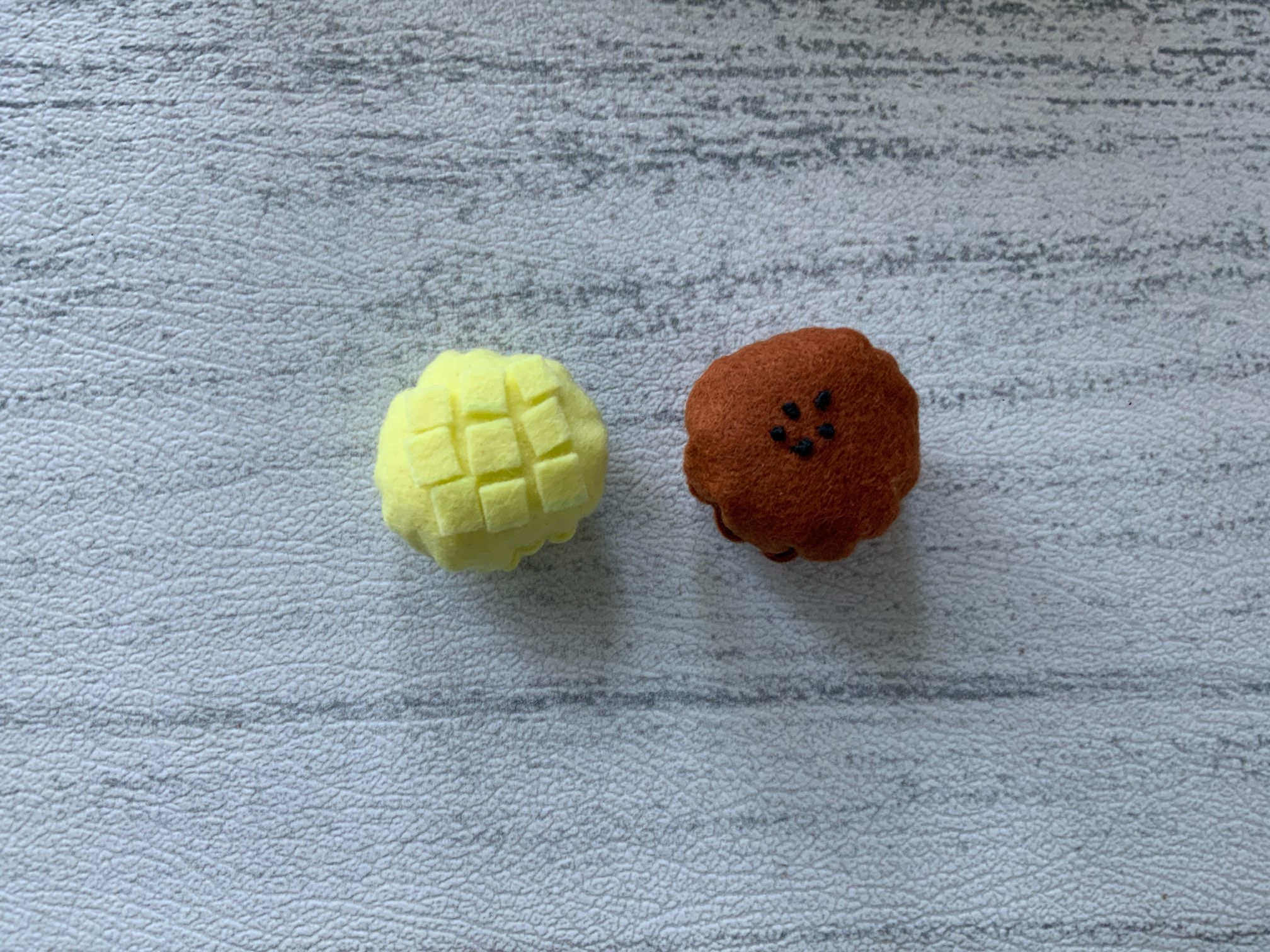 メロンパンとあんぱんで作ったら可愛いかなって。