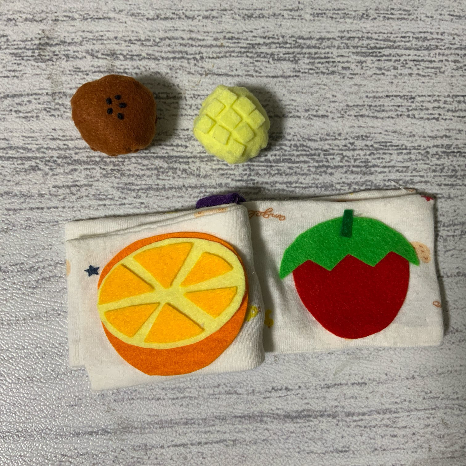 4枚重ねて端を縫って、帯をはめて、ミニ絵本が出来上がりました!