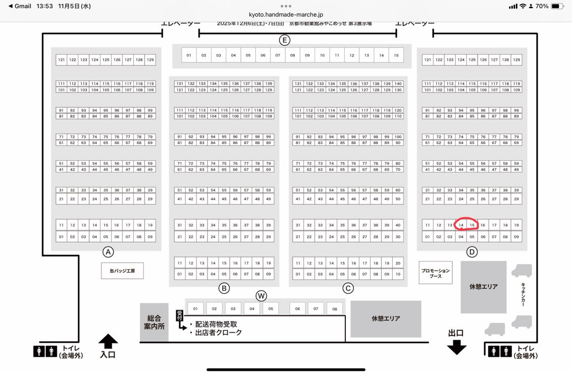 12月6日土曜日の京都ハンドメイドマルシェのブース番号が決まりました!