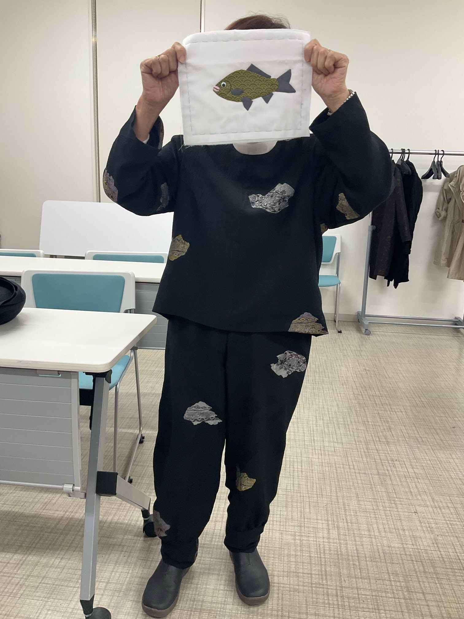 久しぶりに教室に戻ってこられたひろこさんの着てらっしゃったお洋服は、着物をご自分でリフォームされたお洋服です。