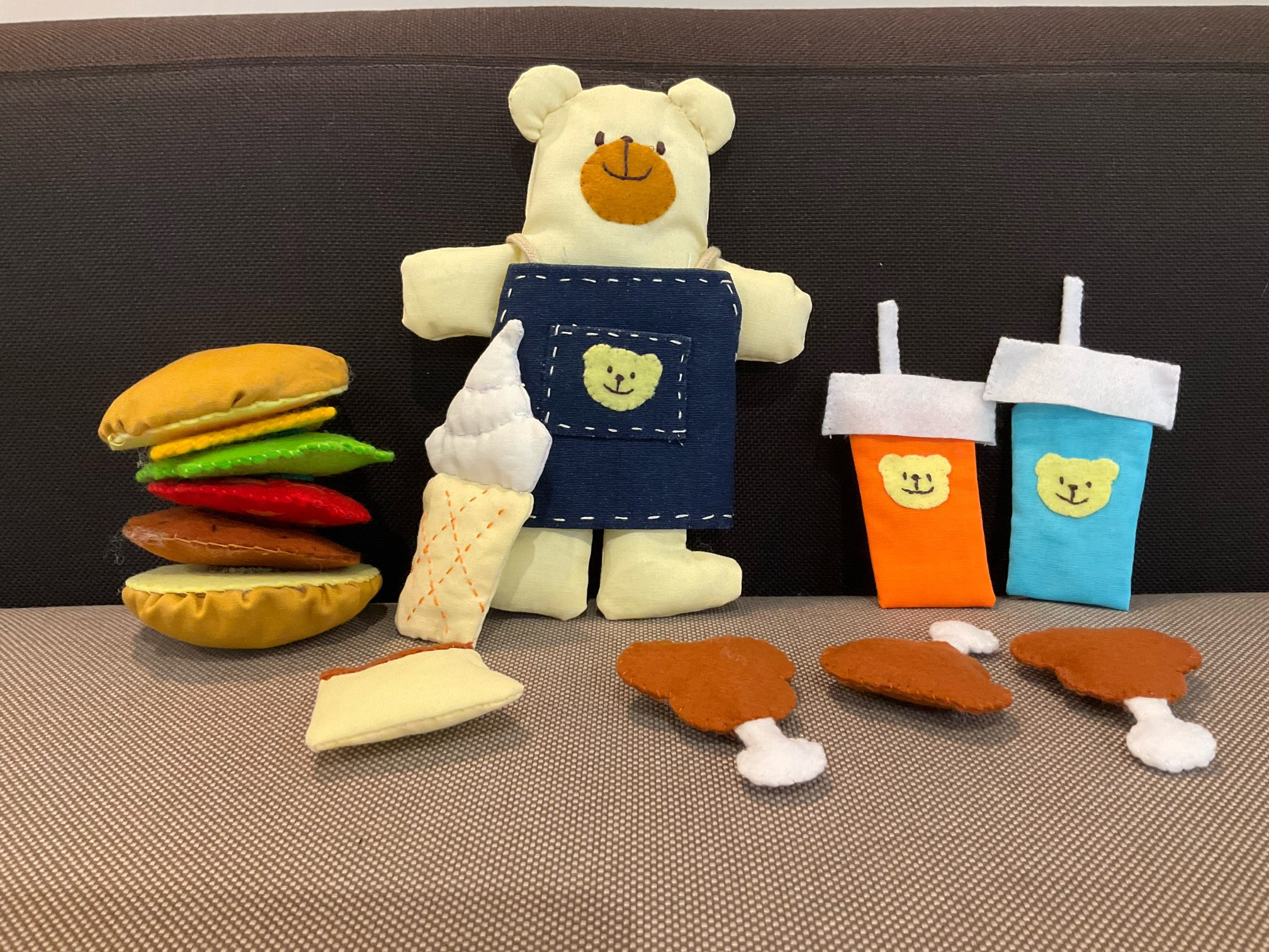 これもはじめに出した本『ママの手作り布絵本』のハンバーガーやさん。
