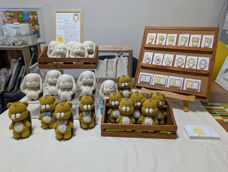 この間のマルシェに一緒に出た編みぐるみと刺繍のクリエーターのまこっぺさん。