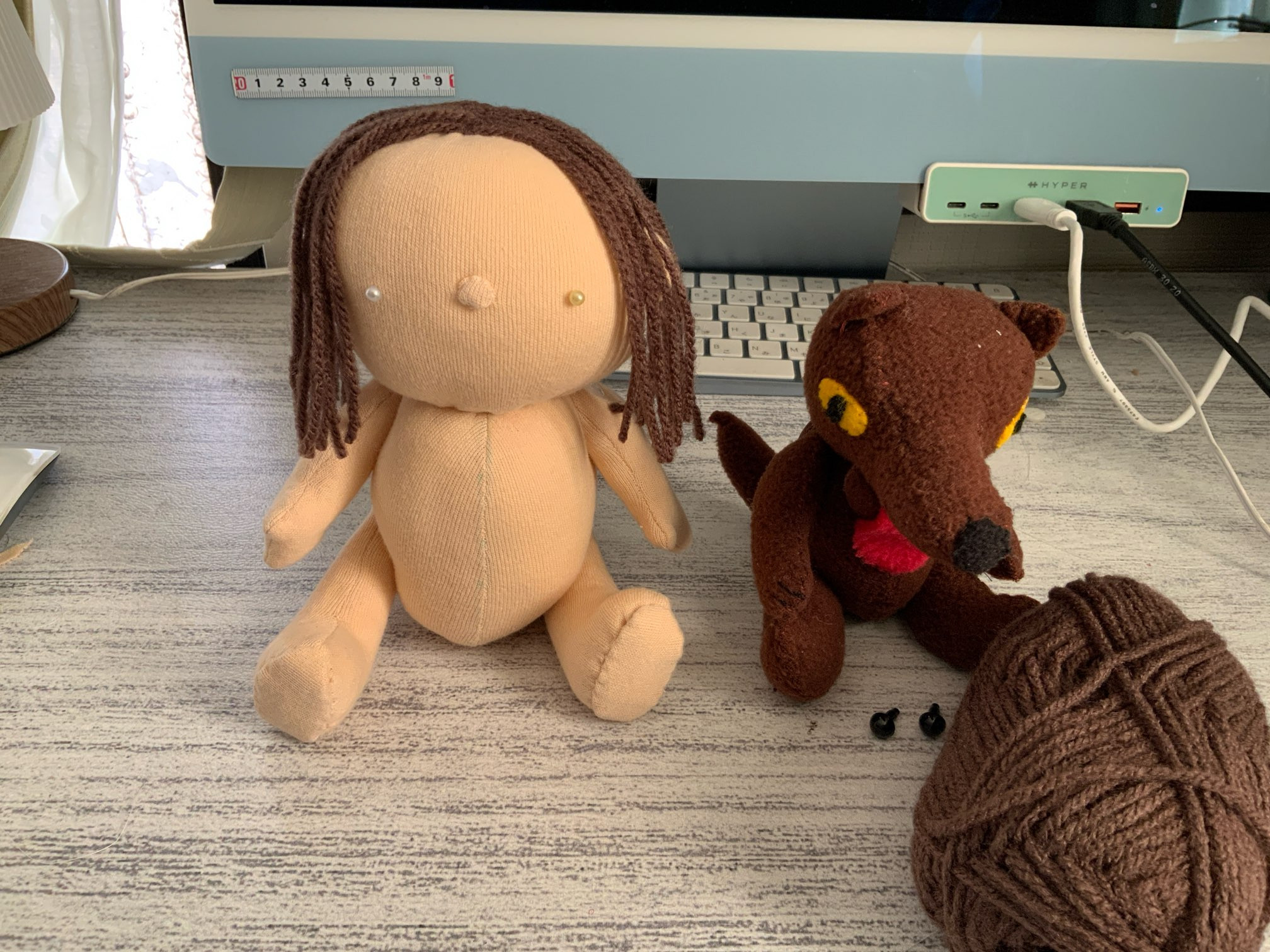 今までのお人形はほぼ長めの髪で、三つ編みができるようにしました。