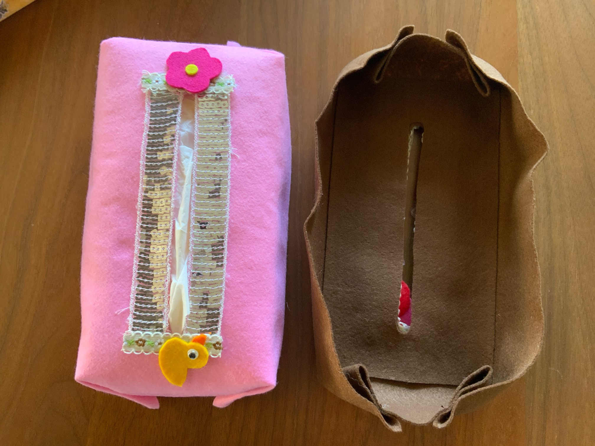 ようやく自分の中で納得したのが、裏に補強のフェルトを両面テープで貼る、そして4箇所を縫って止める、っていうやり方。