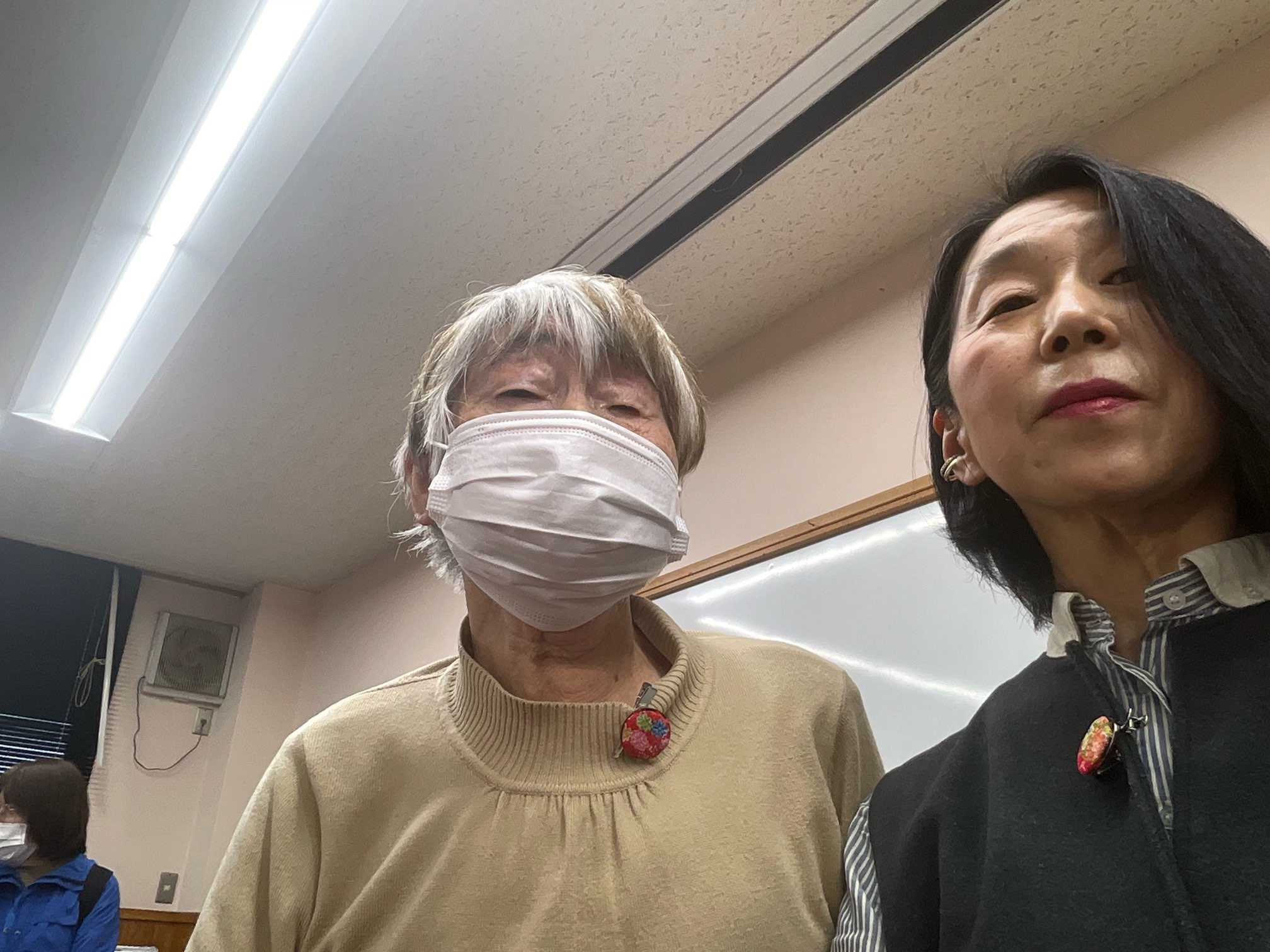 ピンの飾りをつけてらっしゃる方は、中途障害で、今はほとんど見えてらっしゃいません。