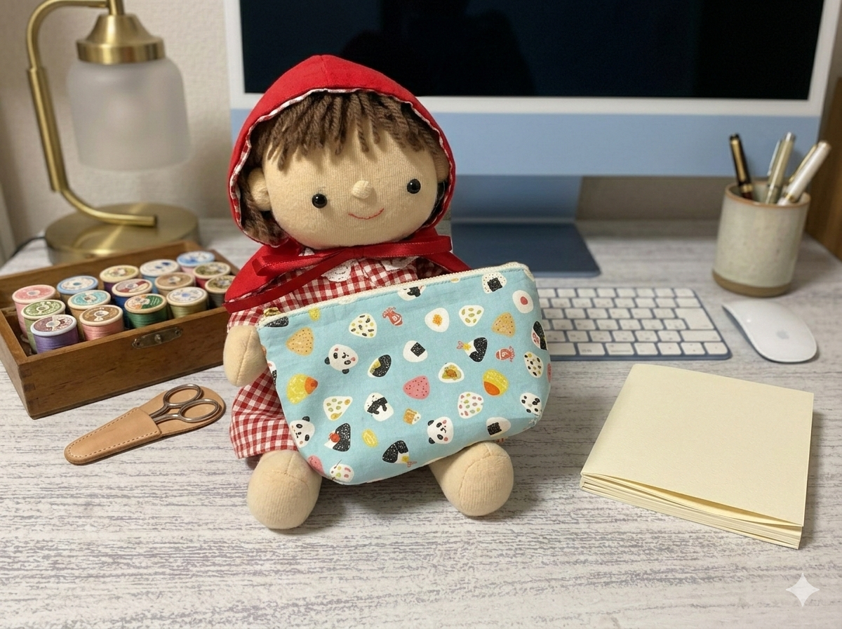 「生地も残ってるね、これでポーチ作る?」