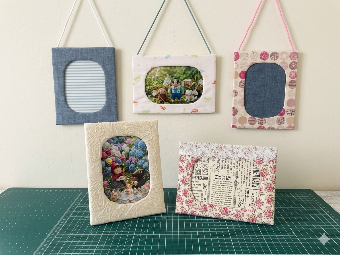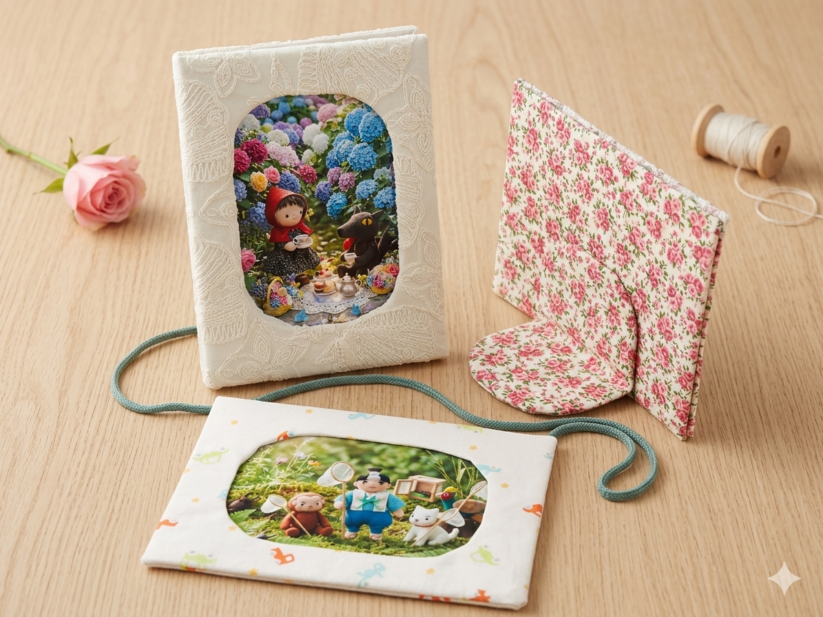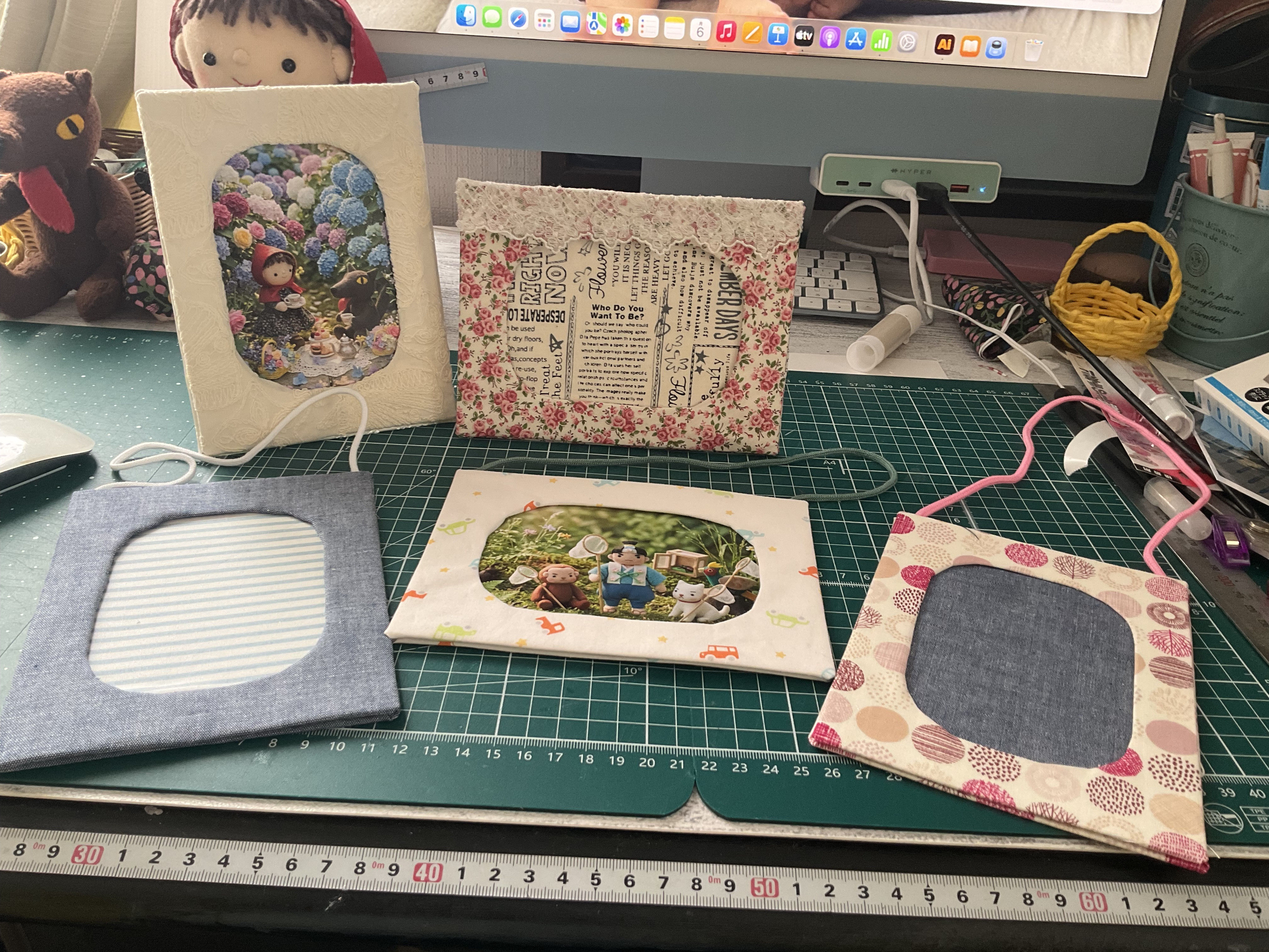 くりぬいた中の部分に布を貼って、試行錯誤。