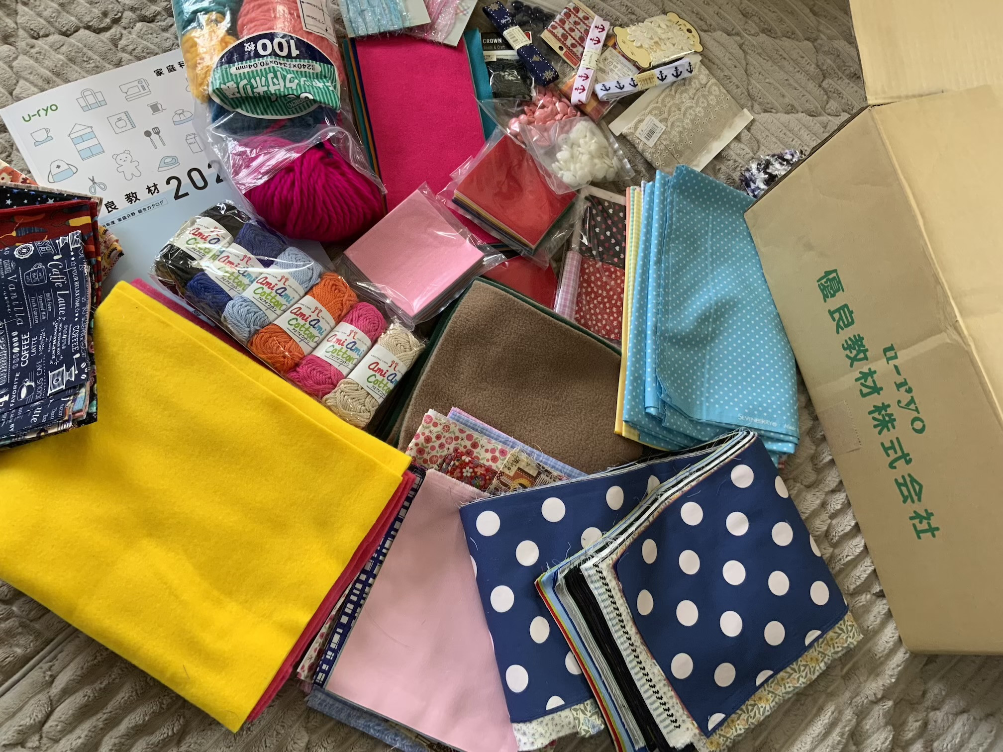 というのも、一年に2回、販売数のご報告書類とともに、たくさんの手芸材料が届くんです。