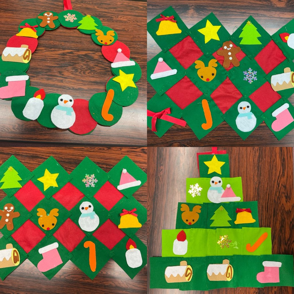 去年ぶらっとさんのハントツリーで考えた簡単クリスマスオーナメントをインスタに載せてたら、母子生活支援施設の手芸担当の職員さんから、来年の年末の作品はこれがいいですね!という話になっていたので、改めてサンプルを作ってみました。