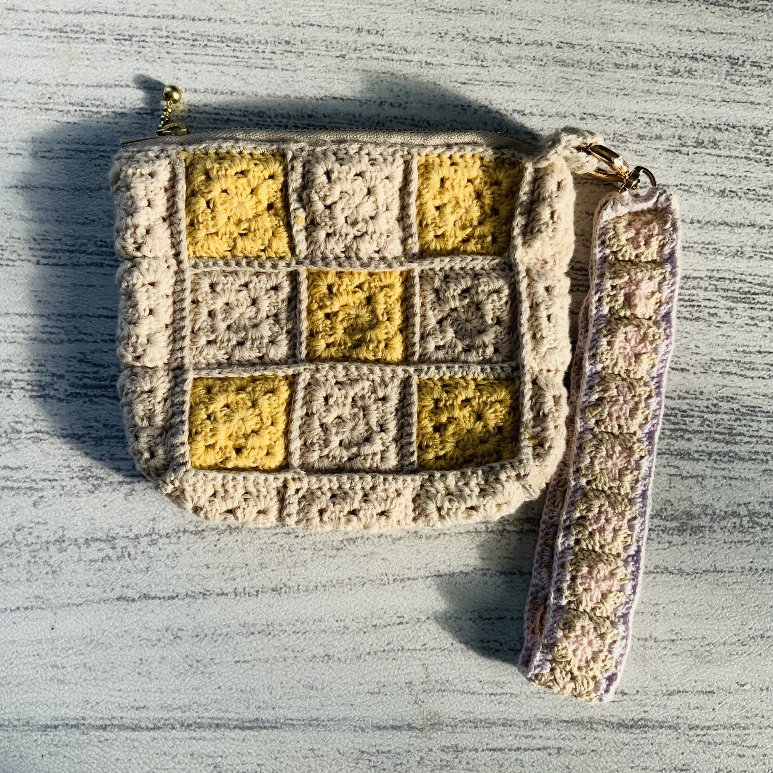 綺麗な色合いがこの写真だと伝わらないけど、繊細で丁寧に編まれたポーチ。