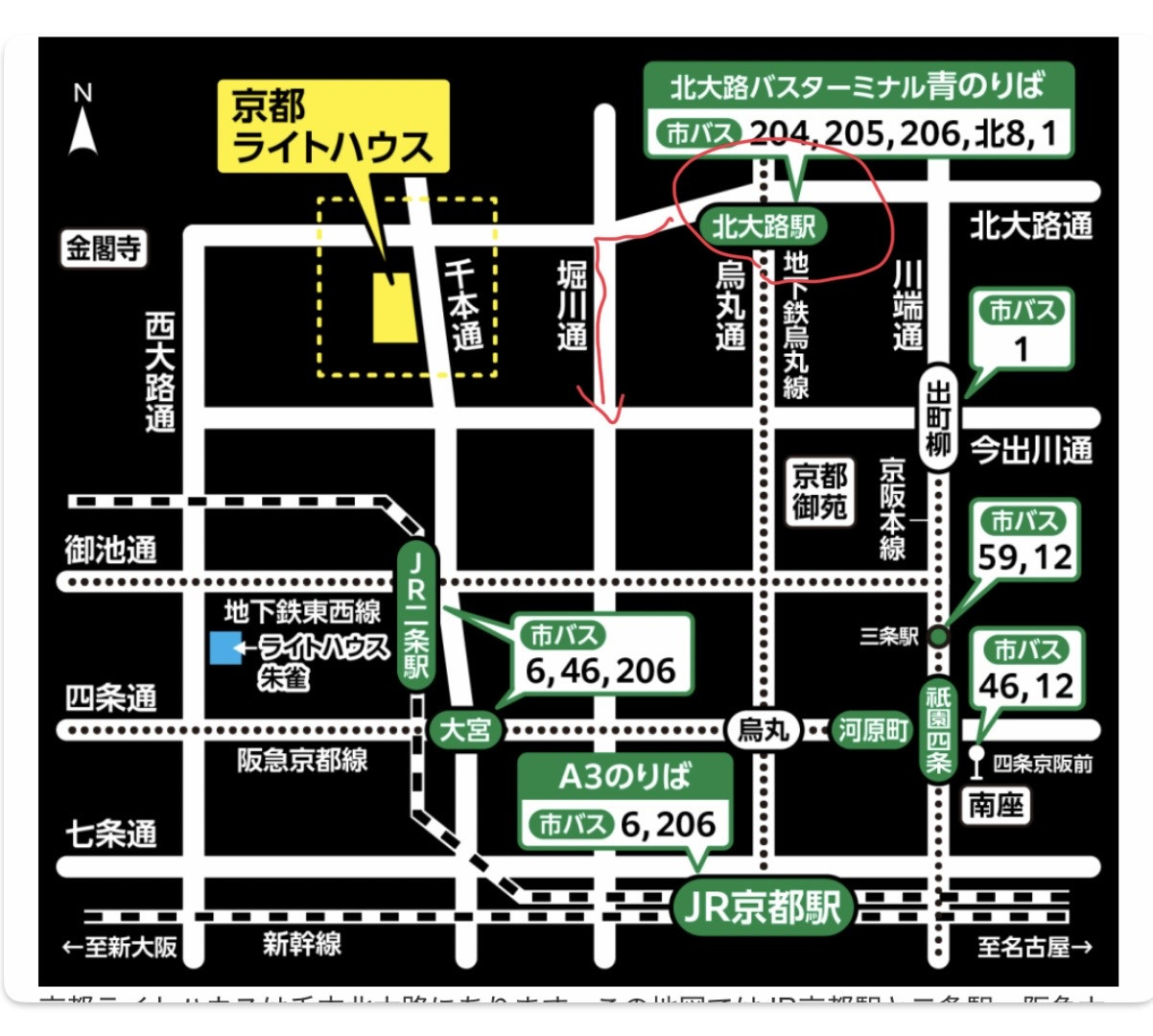 京都の道路は碁盤の目なので、通りを間違えなければまっすぐ進めば大丈夫。