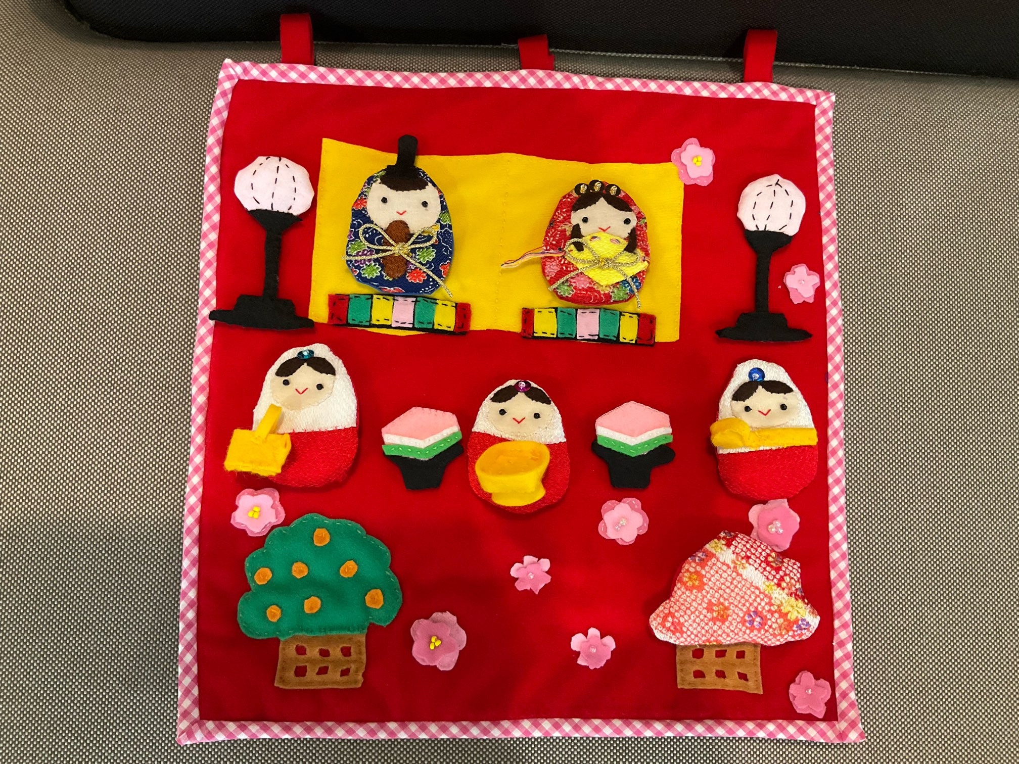 リビングの教室で、季節タペのアレンジを楽しんでくださってるえつよさんのひな祭り。