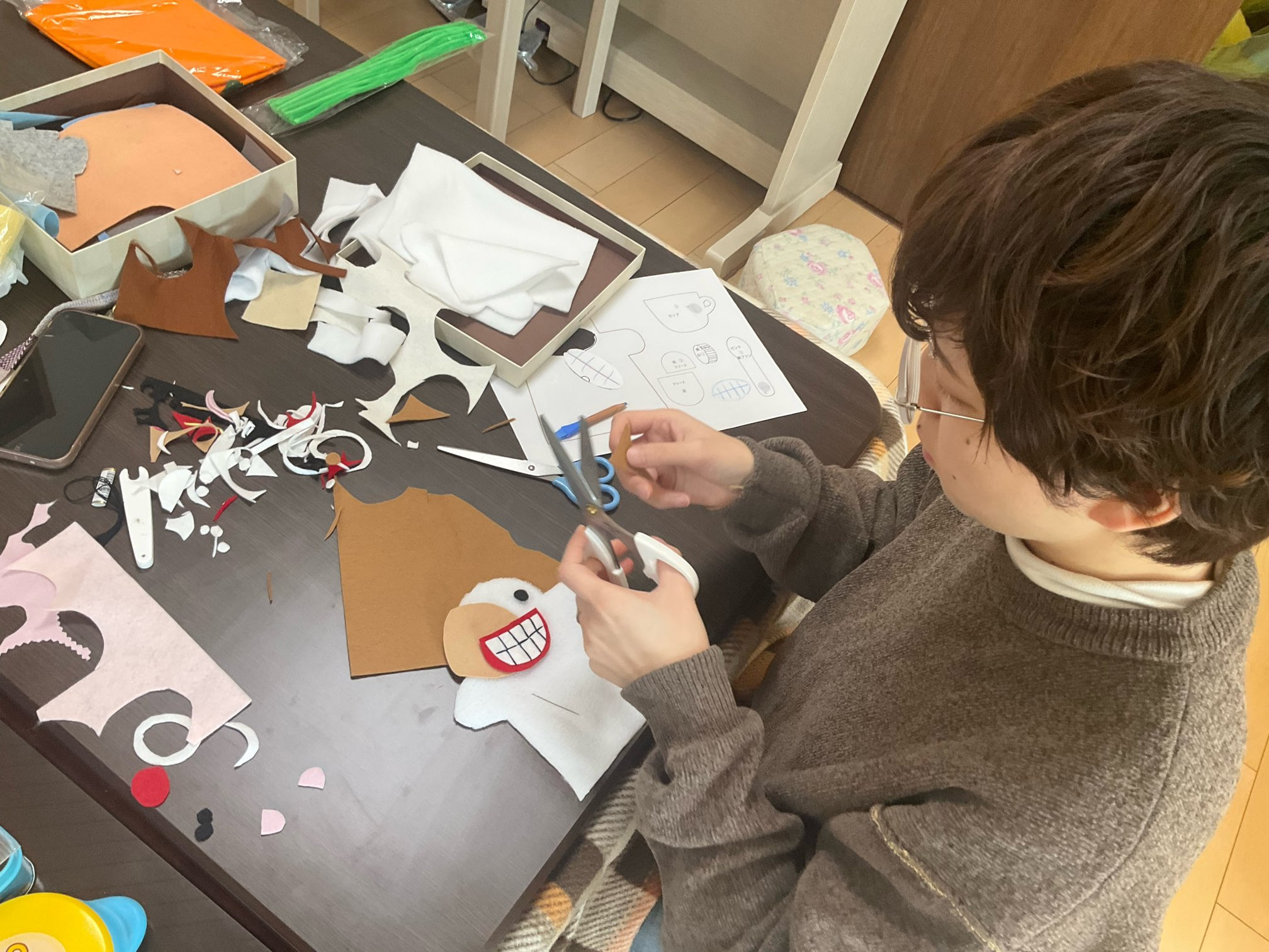 お一人は歯磨きが苦手なお子さんのために、歯磨きをするワンちゃんパペットを作成中。