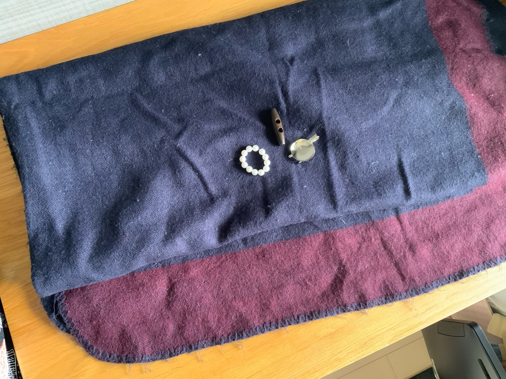 視覚障害の方にとって縫いやすくて簡単は方法を模索しながら、なんとか2時間で作れるように考えたのがこれ。